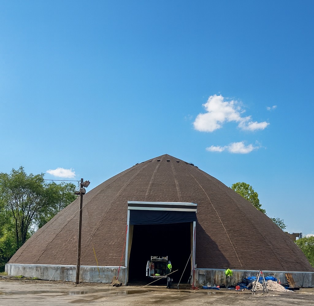 1st Highway Salt DomeMilestone Construction Management had the pleasure of working with the City of Philadelphia to replace the Streets Department 1st Highway Yard facility’s Salt Dome that was constructed back in 1997 in West Philadelphia. This project included salvaging the existing structure by engineering and partial removal and replacement of the wooden salt dome structure which is 60′ tall and 124′ diameter wide on 5′ tall foundations. We installed new lighting, ventilation, tie-ins to the existing electrical, and approximately 19,000 square footage of a new shingled roof was installed.